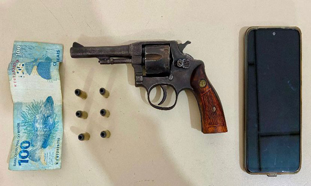 Um homem foi flagrado e preso com uma arma de fogo por guarnições da 77ª CIPM, por volta das 10h30 desta segunda-feira (20), durante ações da 25ª edição da Operação Força Total, no bairro Alto Maron, em Vitória da Conquista. O indivíduo é acusado de ser um dos autores de um homicídio ocorrido no mês de abril, no bairro Guarani. Durante patrulhamento tático no bairro Alto Maron, policiais militares da 77ª CIPM foram acionados com a informação de que um homem estaria ostentando uma arma de fogo em via pública e ameaçando pessoas. Imediatamente os PMs foram até o local onde flagraram o suspeito com um revólver calibre 32 com seis munições, um aparelho celular e R$ 100 em espécie. Identificado como acusado de autoria de homicídio, ele foi apresentado juntamente com o material apreendido ao Distrito Integrado de Segurança Pública (Disep).