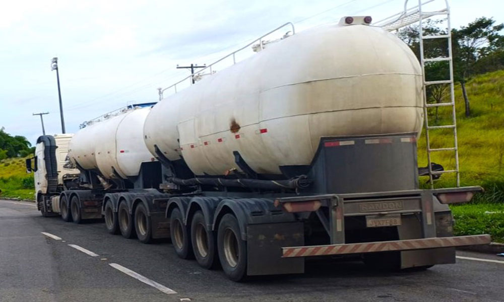 A Polícia Rodoviária Federal (PRF) flagrou, nesta quarta-feira (15), uma carreta com 12.970 quilos em excesso de carga e documentos irregulares durante fiscalização na BR-324 no município de Simões Filho, na Bahia. Durante operação Descanso Legal I, uma carreta Volvo acoplada a dois semirreboques tanque que transportava calcário foi abordado. A equipe do GFT observou que o veículo não possuía a Autorização Especial de Trânsito (AET) para trafegar pelo trecho. Sem o documento, que ampliaria o limite legal da carga, foi constatado o transporte irregular do produto. Tendo em vista que o excesso de peso coloca em risco a vida e o trânsito devido ao comprometimento da suspensão e sistema de freios, além do desgaste do asfalto, o veículo de carga foi retido para transbordo. Os dois semirreboques foram recolhidos ao pátio conveniado por licenciamento atrasado.