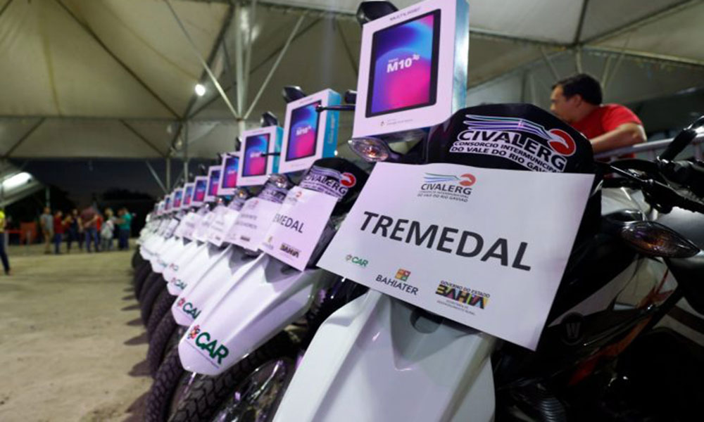 Em mais uma manifestação de apoio à agricultura familiar, o governador Jerônimo Rodrigues entregou, na noite desta quinta-feira (25), em Vitória da Conquista, kits produtivos para 15 municípios da região. A iniciativa aconteceu durante o coquetel de lançamento da 53ª Exposição Nacional de Agropecuária de Vitória da Conquista, no Parque de Exposições Teopompo de Almeida, quando ele autorizou, também, a restauração e pavimentação em trechos da BR-415. Para impulsionar a produção alimentar na região, o governador Jerônimo Rodrigues entregou 30 motos e 30 tablets para 15 municípios do Consórcio Intermunicipal do Vale do Rio Gavião (Civalerg). Os kits produtivos fazem parte de um convênio entre a Secretaria de Desenvolvimento Rural (SDR), por meio da Companhia de Desenvolvimento e Ação Regional (CAR) e do Civalerg. Com investimento total de R$ 4,5 milhões, a iniciativa vai beneficiar 1.800 famílias de Anagé, Aracatu, Belo Campo, Cândido Sales, Caraíbas, Condeúba, Cordeiros, Guajerú, Licínio de Almeida, Maetinga, Malhada de Pedras, Mortugaba, Piripá, Presidente Jânio Quadros e Tremedal. O município de Piripá, distante 120 quilômetros de Conquista, ganhou dois kits produtivos do Governo do Estado. O investimento foi comemorado pela secretária municipal de Agricultura, Maria Aparecida Dias Brandão. “A entrega dessas duas motos é de fundamental importância para o fortalecimento da agricultura familiar, não só nos municípios de Piripá, mas em todos os municípios vizinhos. A agricultura familiar é um segmento que precisa ser, cada vez mais, fortalecido, pois é do campo que vem o alimento para a cidade. E essas motos vão ajudar na assistência técnica, com as visitas dos técnicos, das secretarias dos municípios, que vai estar diretamente com o produtor e, assim, fortalecer a cadeia do leite, do mel e da mandioca”, pontuou. Com um investimento de 53 milhões, a terceira maior cidade da Bahia vai receber 30 quilômetros de nova pavimentação em três trechos da BR-415: anel viário Leste de Vitória da Conquista / Barra do Choça, entroncamento BR-412, com acesso ao Povoado de Cafezal, e o acesso à BR-415, também em Barra do Choça. A obra é capitaneada pela Secretaria de Infraestrutura do Estado da Bahia (Seinfra) e está prevista para ser iniciada no início do mês de maio, com a estimativa de beneficiar 420 mil pessoas dos municípios de Conquista, Barra do Choça, Anagé, Planalto e Porções. Também foi anunciada a restauração imediata da pavimentação das vias internas do Parque de Exposições de Vitória da Conquista.  Para estimular o desenvolvimento do setor agrícola e agropecuário da região, o Governo da Bahia vai apoiar a 53ª Exposição Nacional de Agropecuária de Vitória da Conquista, organizada pela Cooperativa Mista Agropecuária Conquistense (Coopmac). O evento, que acontecerá entre 5 e 9 de junho, vai reunir pequenos produtores, empresários do setor e cooperativas agrícolas.  As secretarias de Desenvolvimento Rural (SDR) e da Agricultura (Seagri) deverão investir quase R$ 1 milhão no projeto de apoio à exposição e na construção de espaços que impulsionem a divulgação e ampliação das possibilidades de comercialização dos produtos da agricultura familiar. São eles: a Vila da Agricultura Familiar, com 32 expositores da região; a Praça das Cervejas Artesanais, com seis quiosques; a Praça Gastronômica, com 10 estandes para a comercialização da rica culinária regional, e o Restaurante do Empório, no mesmo modelo daquele que funciona na Ceasa do Rio Vermelho, em Salvador. O governador Jerônimo Rodrigues garantiu a participação no evento. “Esta edição da exposição nacional vai resgatar a força que a agropecuária tem na produção do leite, do café, das principais culturas. Será uma oportunidade de projetar a região na esfera nacional”, disse. A 53ª Exposição Nacional de Agropecuária de Vitória da Conquista será aberto ao público. Para a segurança do evento, que deverá reunir mais de 50 mil pessoas, estão garantidos 535 policiais militares.