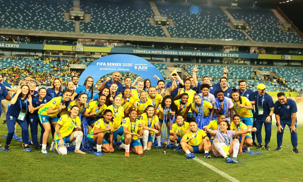 A Seleção Brasileira Feminina de Futebol sagrou-se campeã do FIFA Series 2026 na noite de sábado (18) após vencer o Seleção Canadense Feminina de Futebol por 1 a 0 na decisão disputada na Arena Pantanal, em Cuiabá. O resultado confirmou a excelente campanha da equipe comandada por Arthur Elias, que encerrou a competição com 100% de aproveitamento. O confronto decisivo reuniu duas seleções entre as principais do cenário mundial e foi marcado pelo equilíbrio e intensidade. Brasil e Canadá chegaram à última rodada com duas vitórias cada, após superarem Seleção Sul-Coreana Feminina de Futebol e Seleção Zambiana Feminina de Futebol, o que transformou o duelo em uma final direta pelo título. Dentro de campo, a equipe brasileira apresentou organização, consistência defensiva e eficiência para garantir a vitória. Antes da decisão, o Brasil goleou a Coreia do Sul por 5 a 1 e venceu a Zâmbia por 6 a 1, consolidando uma campanha dominante. O Canadá terminou na segunda colocação, após vencer a Coreia do Sul por 3 a 1 e a Zâmbia por 4 a 0. Já Coreia do Sul e Zâmbia empataram em 1 a 1, com as coreanas ficando em terceiro lugar pelo critério de saldo de gols.